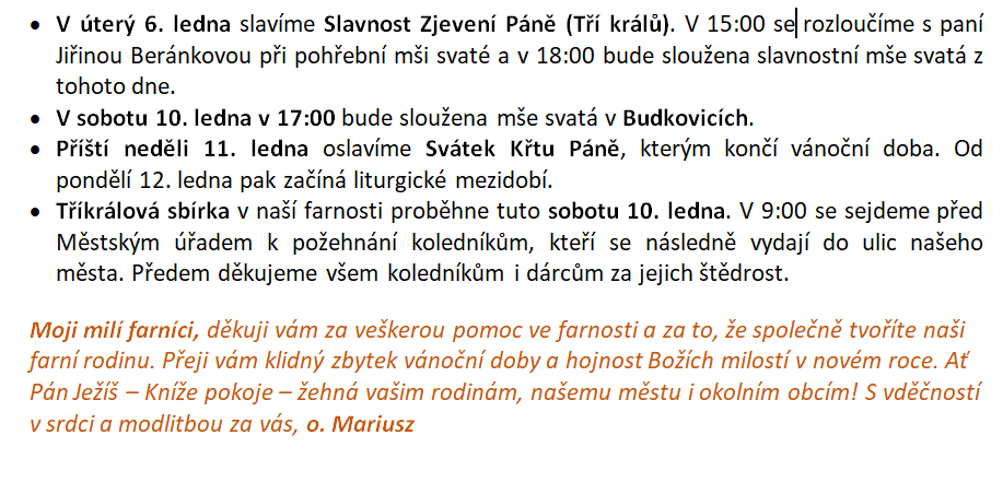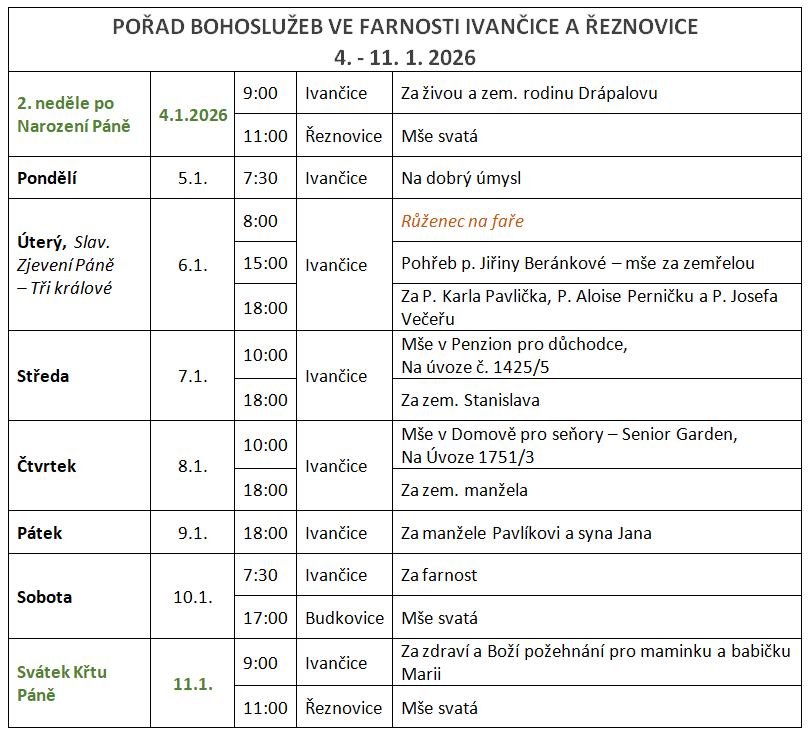 Pořad bohoslužeb 4. - 11. 1. 2026