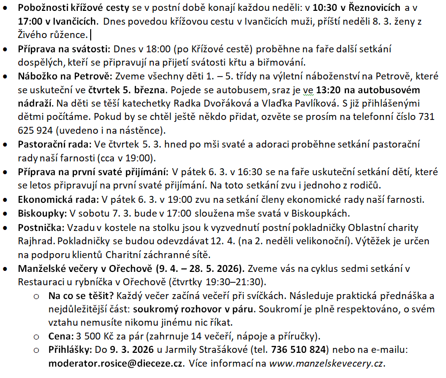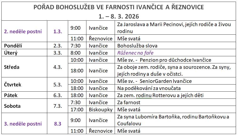 Pořad bohoslužeb 1. - 8. 3. 2026