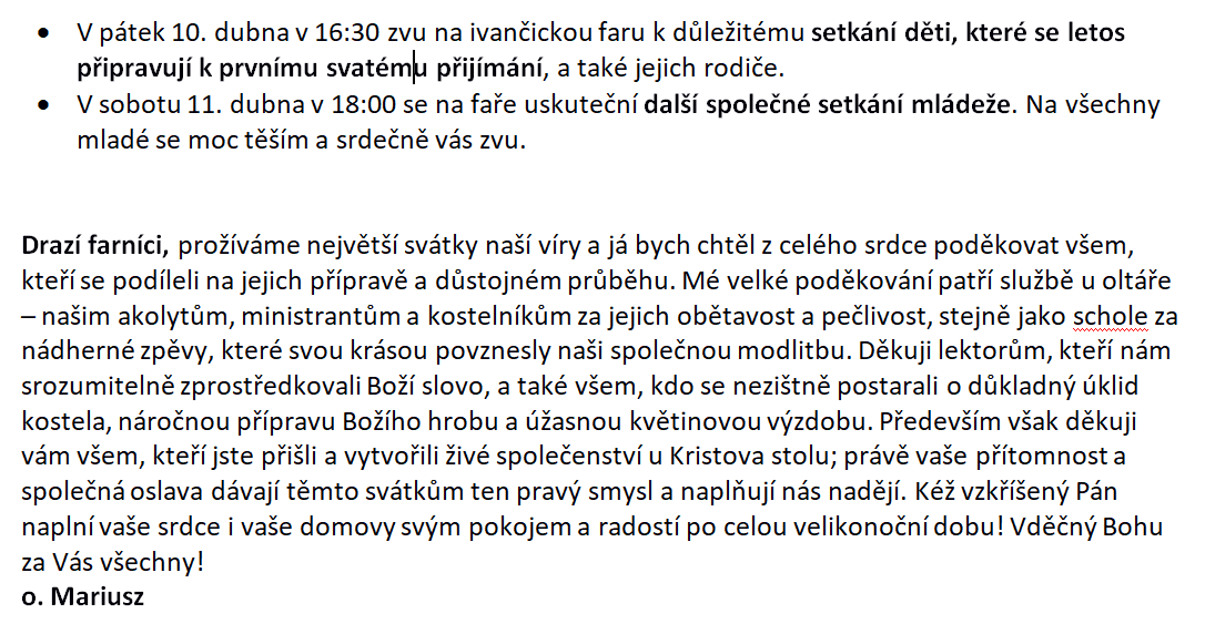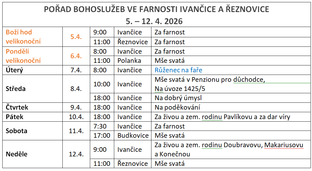 Pořad bohoslužeb 5. - 12. 4. 2026